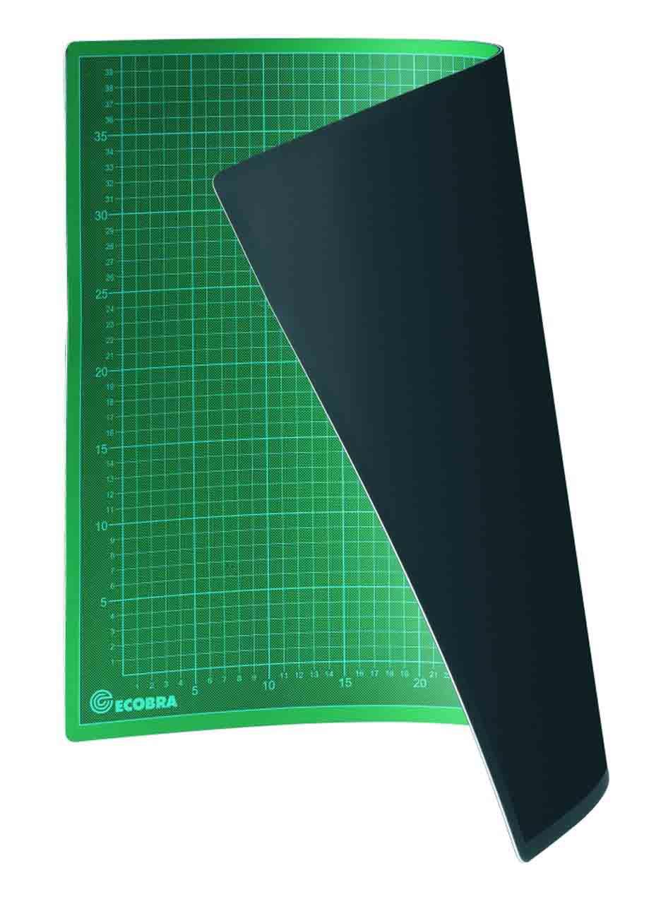 Standard-Cutting-Mat beidseitig grün – einseitiger Aufdruck, Teilung 10 und 50 mm, 5-lagig, 3 mm stark.