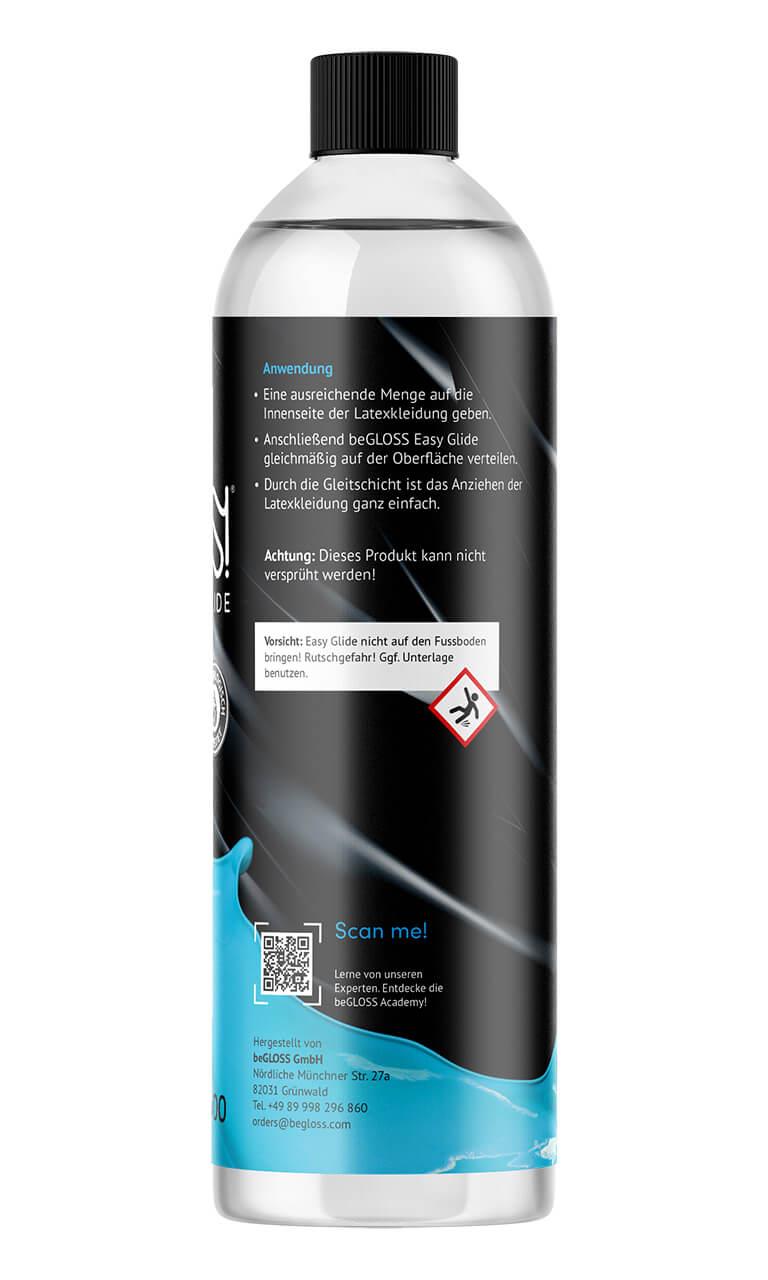 beGLOSS EASY GLIDE erleichtert das Anziehen von Gummi - und Latexkleidung. Eine ideale Anzieh-Unterstützung verleiht hervorragende Gleiteigenschaften und ein besonders angenehmes Tragegefühl auf der Haut.