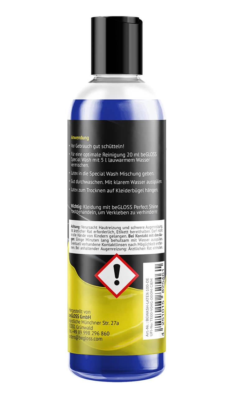 Außerdem ist beGLOSS SPECIAL WASH die perfekte Vorbehandlung von Reparaturen der Gummi & Latex Kleidung.